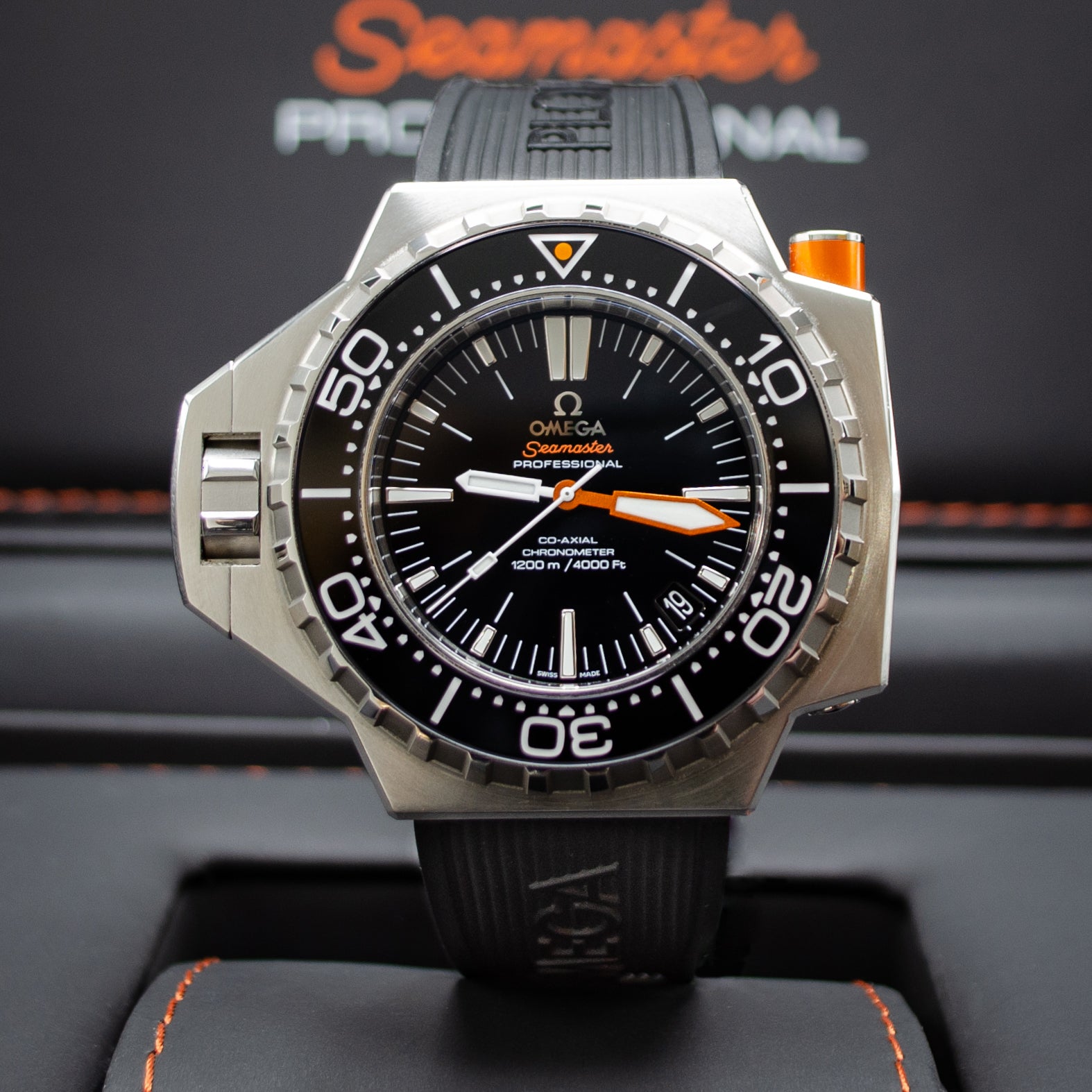 The Omega Ploprof is a watch that needs to introduction. This behemoth of a watch is Omega's most hardcore diver, allowing divers to go 1200m, given you don't implode.
