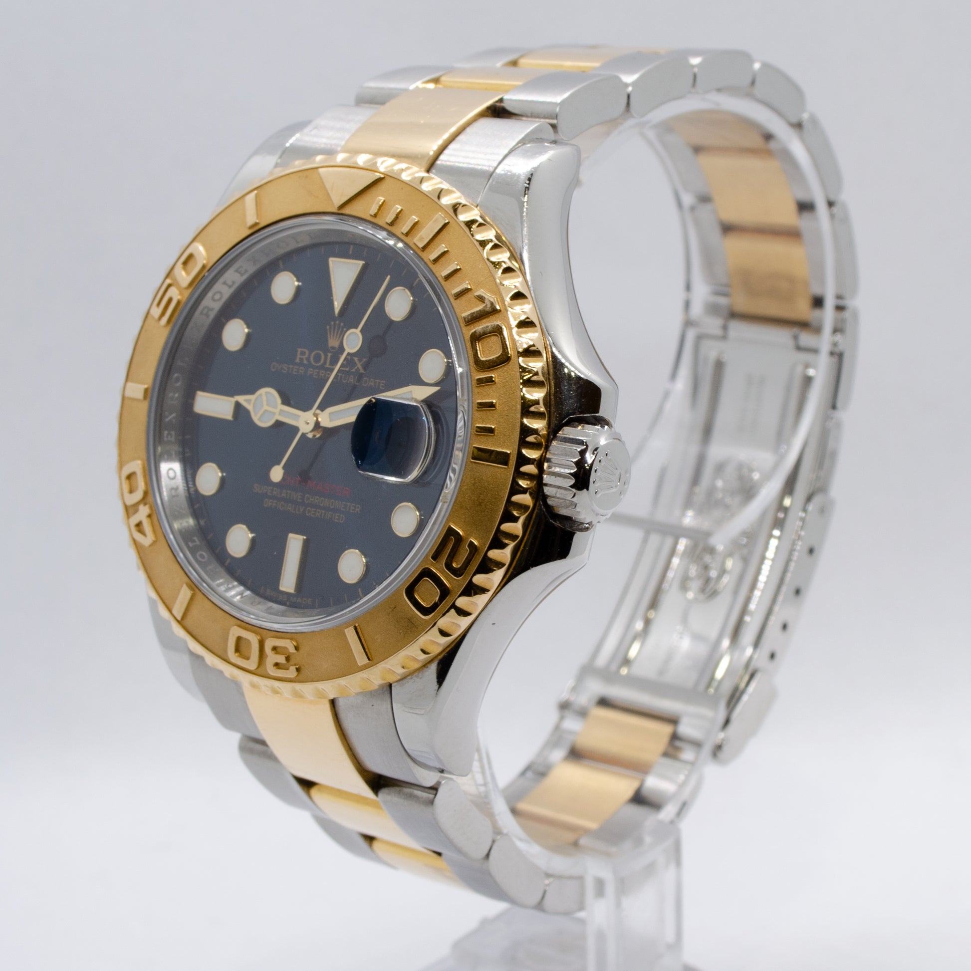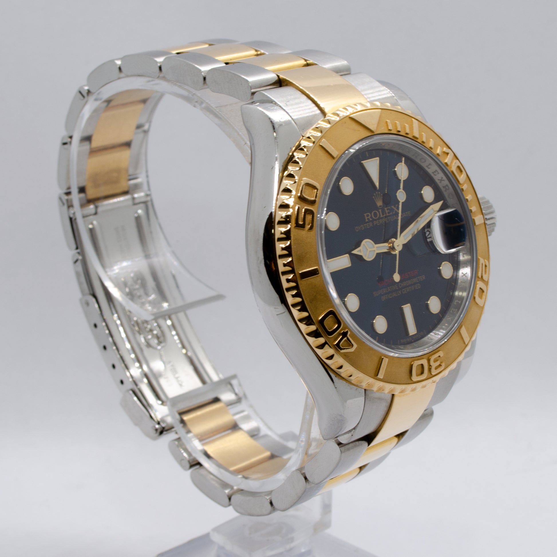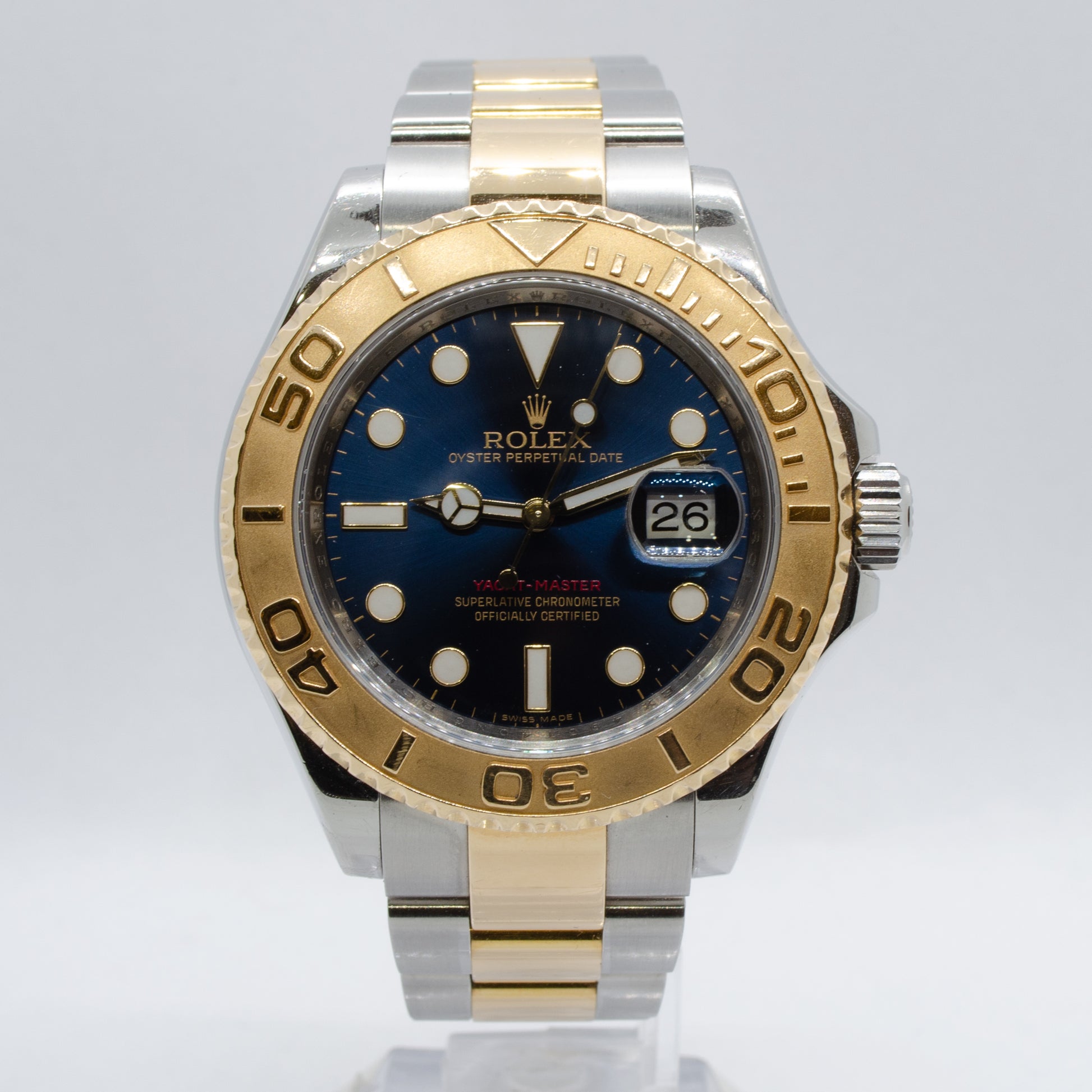 This particular example comes from 2013, and originally came with a champagne colored dial, although was fitted with an original blue dial during a routine service by Rolex. It comes equipped with the blue dial, with the champagne dial included in the full set of box and papers. In purchasing this watch, you essentially get 2 watches in 1, with a short trip to your local watchmaker (or us!) to swap out the dials. Overall this example shows light wear along the 18k gold sections, with the rest of the watch being in great condition.